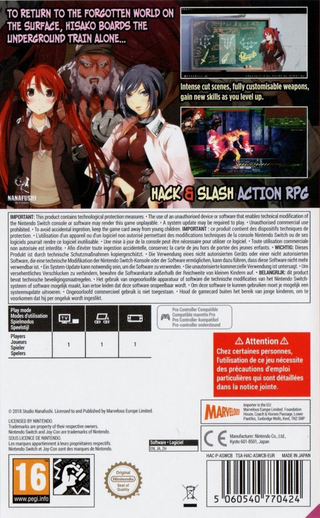 Join Hisako’s fight for survival against the zombie infestation overrunning Tokyo and defend her right to a normal school life in this fast-paced 2.5D adventure. Forced into isolation underground by the zombie apocalypse, Hisako has little understanding of the world above. After hearing stories about schools aboveground, Hisako dons her grandmother's school uniform and takes up arms against the undead horde with one goal in mind: to become a school girl!